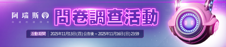 為了提供更優質的服務與遊戲環境,特此舉辦問卷調查活動。