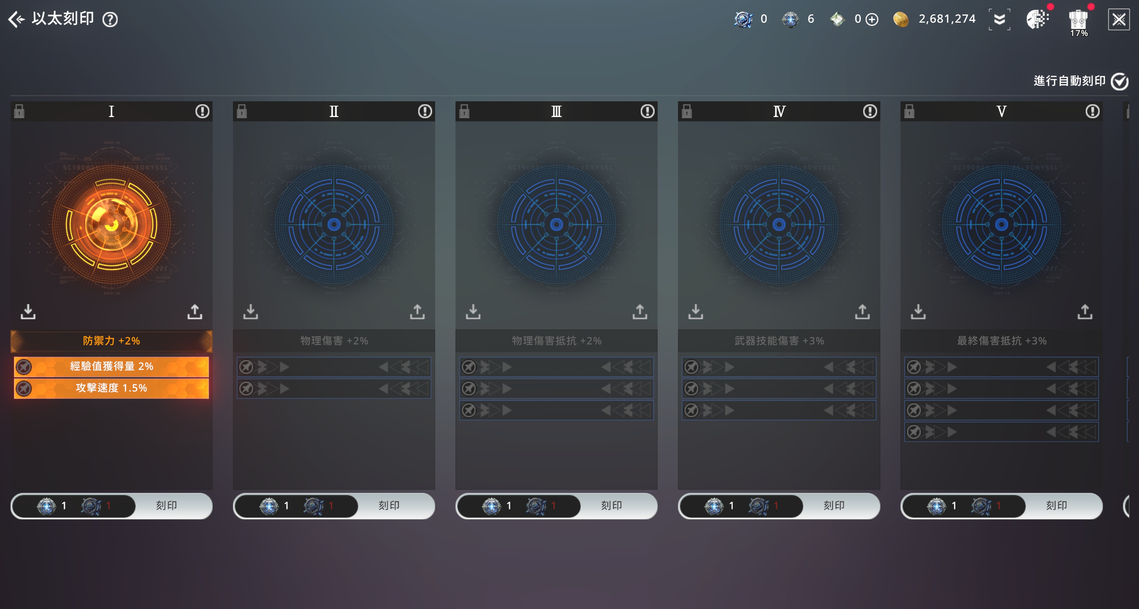 :各階段皆有特殊刻印屬性,當各階段內所有屬性的數值皆達到最大時,便可啟用。
