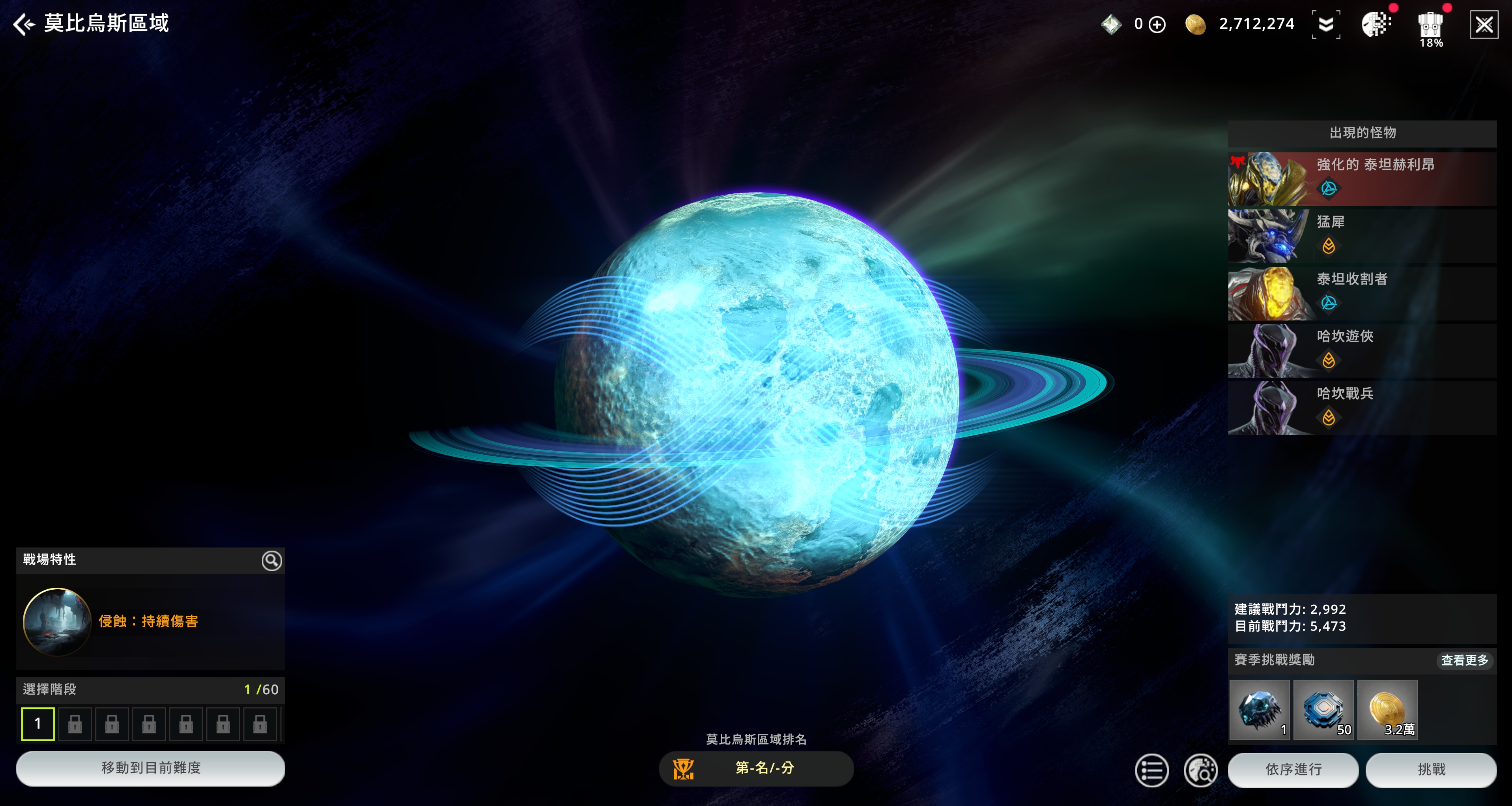 ⊙ 莫比烏斯區域:共60階段,通關後可獲得該賽季首次挑戰獎勵。
