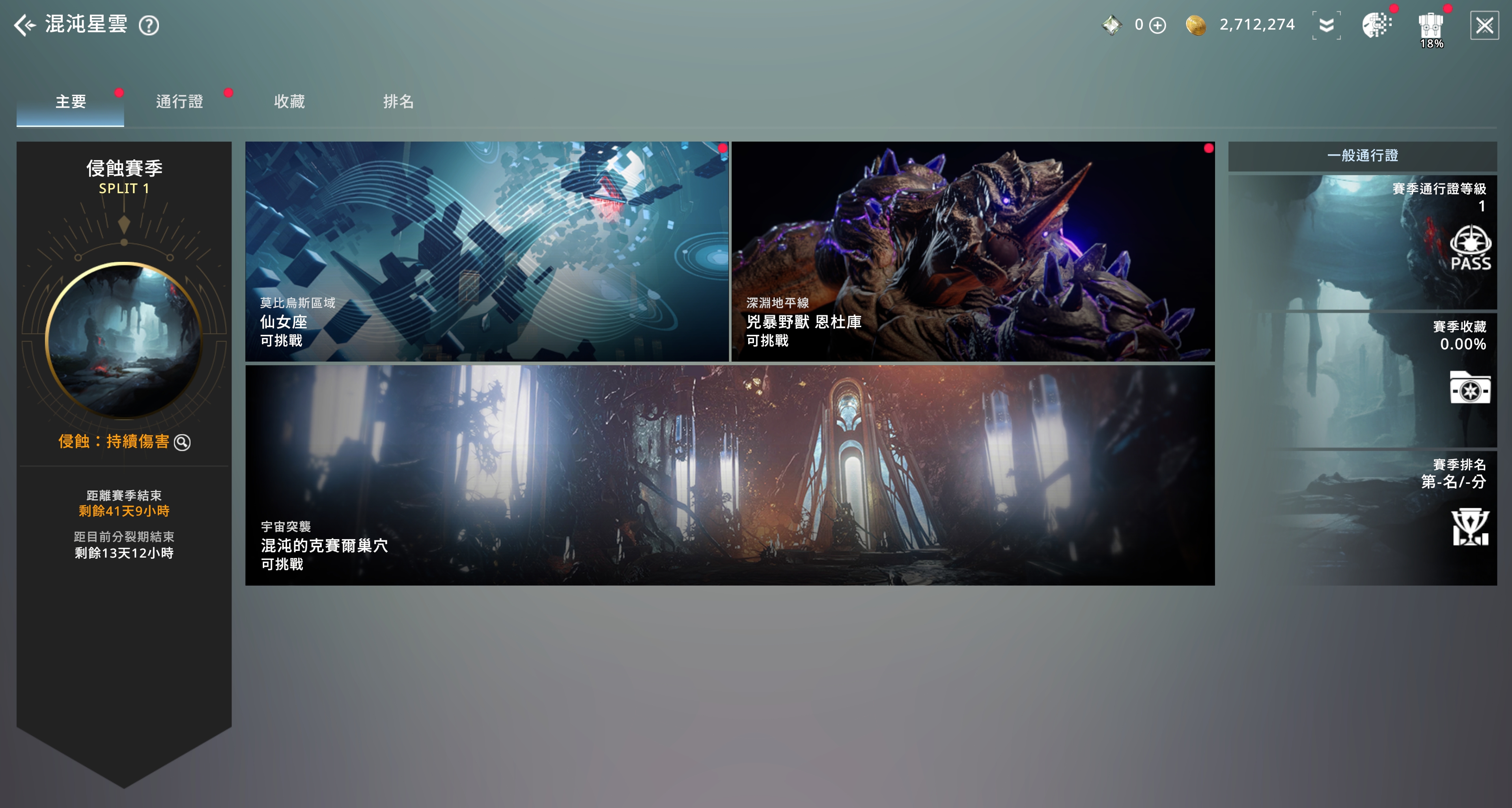 - 於「混沌星雲:侵蝕」中,將同步展開全新的「賽季通行證 / 賽季收藏 / 賽季排名」活動。